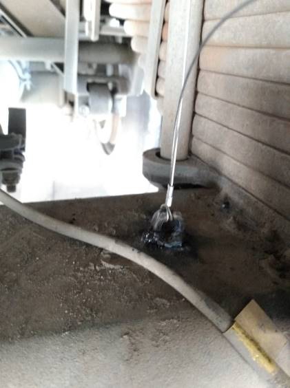 1.下圖傳感器的支架被頂彎曲變形,是因為傳感器的低端2的部位與車體3的部位挨著太近,車輛運行起來,