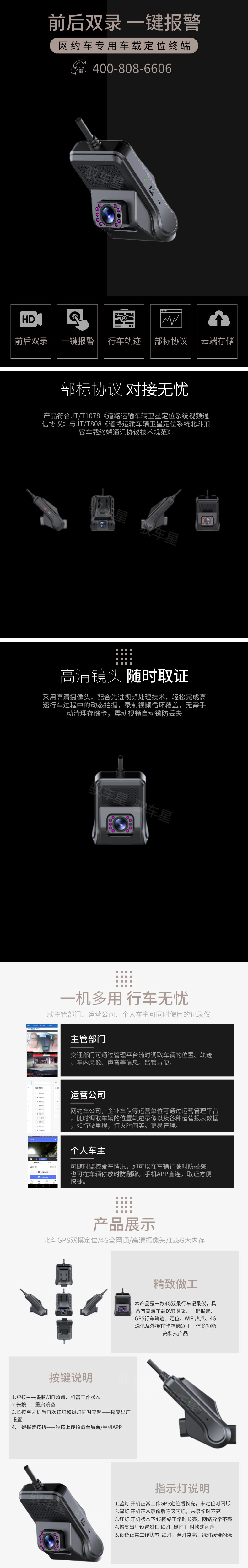 GT10是一款車內(nèi)、車外4G監(jiān)控終端,具有高清車載DVR攝像、一鍵報(bào)警、定位、WIFI、4G通訊、外擴(kuò)大容量存儲多功能一體機(jī),符合JT/1078《道路運(yùn)輸車輛衛(wèi)星定位系統(tǒng)視頻通信協(xié)議》與JT/808《道路運(yùn)輸車輛衛(wèi)星定位系統(tǒng)北斗兼容車載終端通訊協(xié)議技術(shù)規(guī)范》的技術(shù)要求。