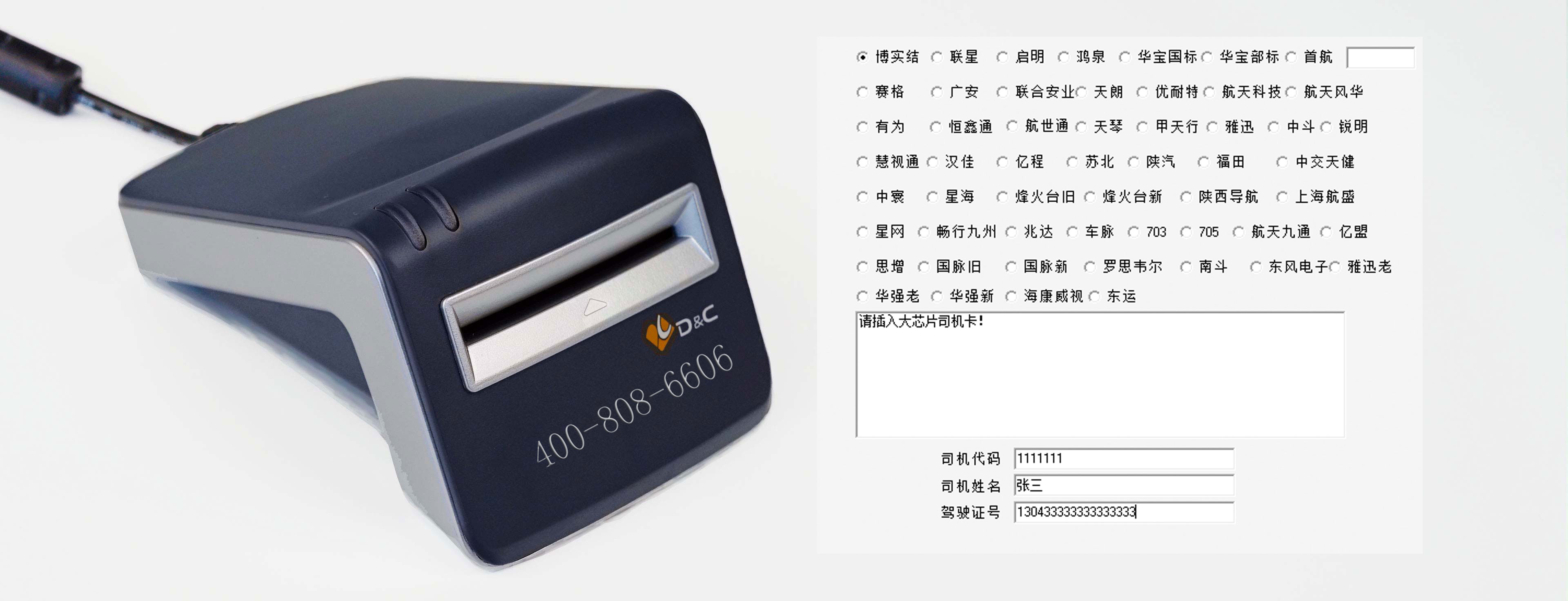 同時支持大多數貨車廠家自帶的北斗記錄儀司機卡信息的寫入和更改如解放、陜汽、重汽、福田、東風等等
